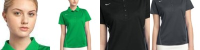 Switch up your solids with this contrast stitch style while staying dry through heated rounds with Dri-FIT moisture management technology. Design details include a flat knit collar, dyed-to-match buttons and open hem sleeves. Tailored for a feminine fit with a five-button placket. The contrast Swoosh design trademark is embroidered on the right chest. Made of 5-ounce, 100% polyester Dri-FIT fabric.