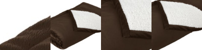 - 11-ounce, 100% polyester fleece; 12-ounce, 100% polyester sherpa