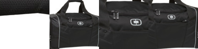 600 denier polyester D-shaped zippered entry for easy access Padded handle Detachable adjustable shoulder strapTwo front zippered pocketsTwo large side pockets Dimensions: 13.5"h x 27.25"w x 14.5"d; Approx. 5 372 cubic inches Note: Bags not intended for use by children 12 and under. Includes a California Prop 65 and social responsibility hangtag.